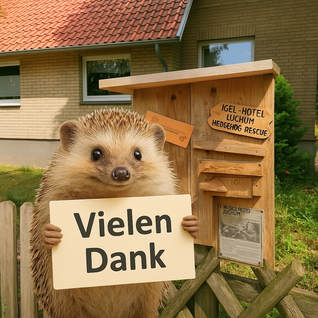 - Per Überweisung: Wir teilen Ihnen auf Nachfrage auch sehr gerne unsere IBAN mit. Schreiben Sie uns dazu einfach eine kurze Nachricht an: igelhilfe@igelhotelluck.de